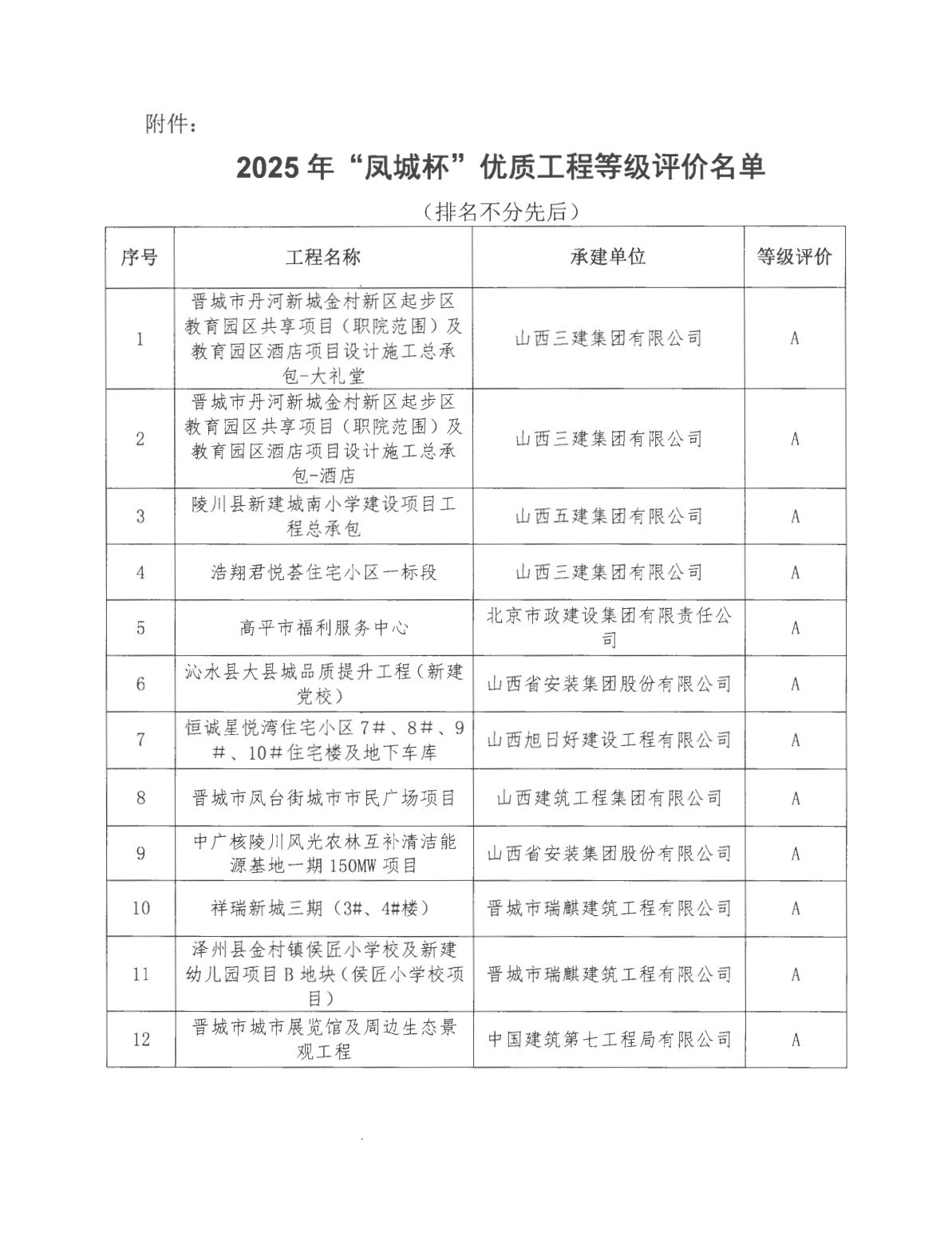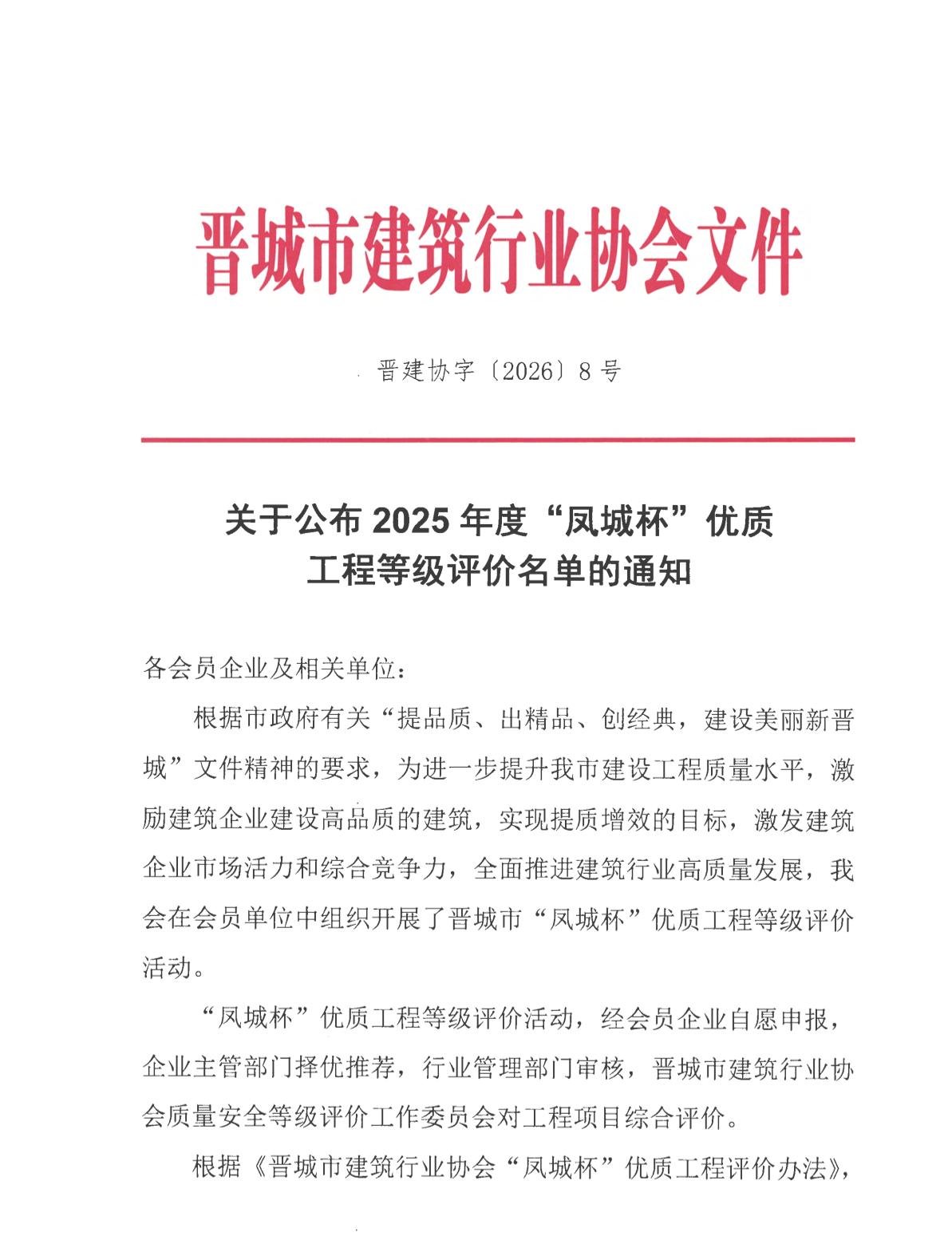 关于公布202年度"凤城杯"优质工程等级评价名单的通知