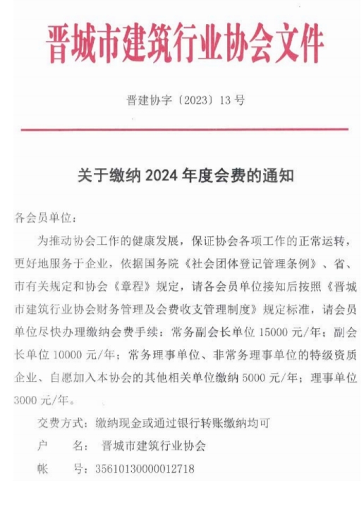关于缴纳2024年度会费的通知