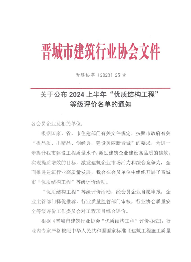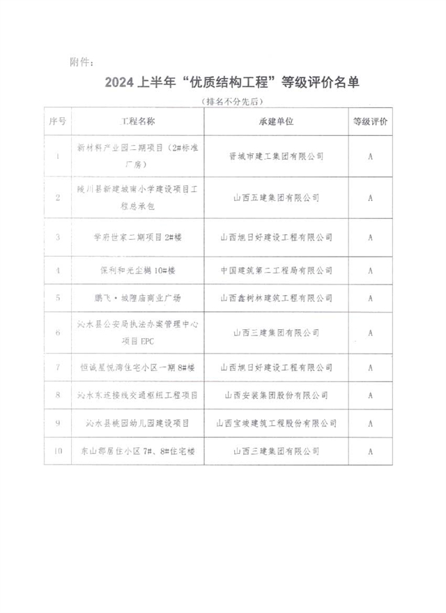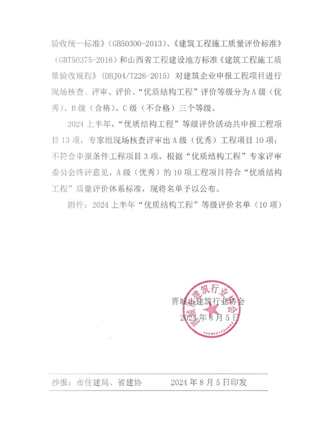 关于公布2024上半年“*结构工程”等级评价名单的通知
