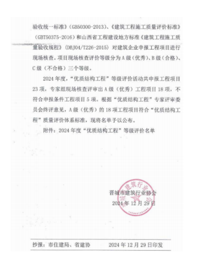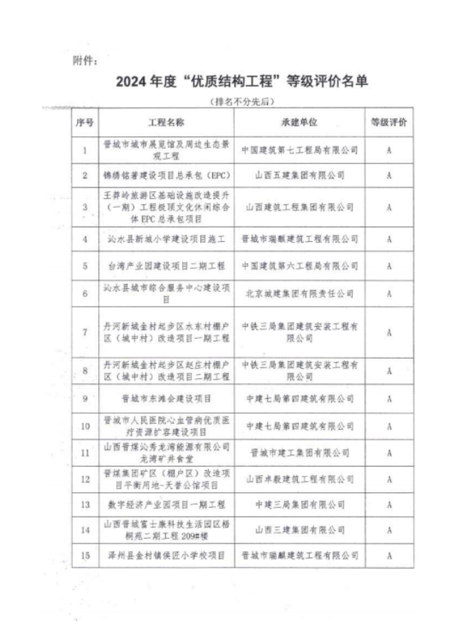 2024年度“*结构工程”等级评价名单通知
