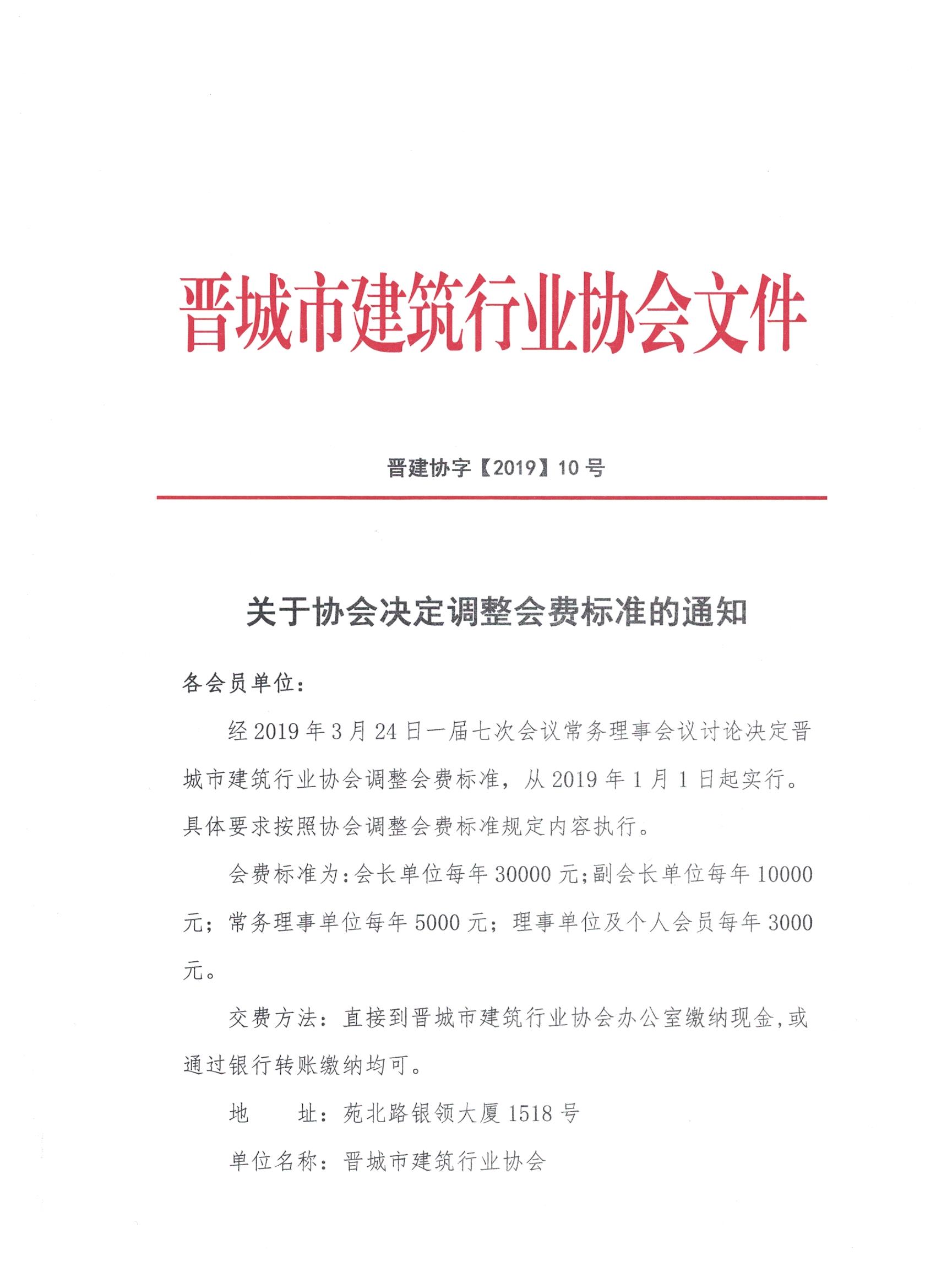 关于协会决定调整会费标准的通知