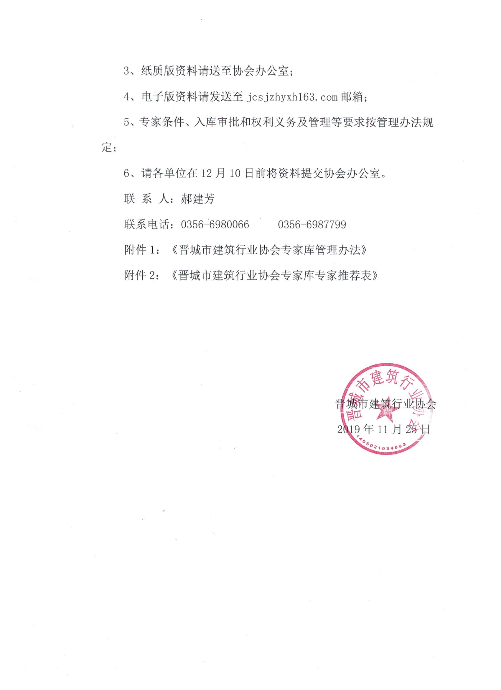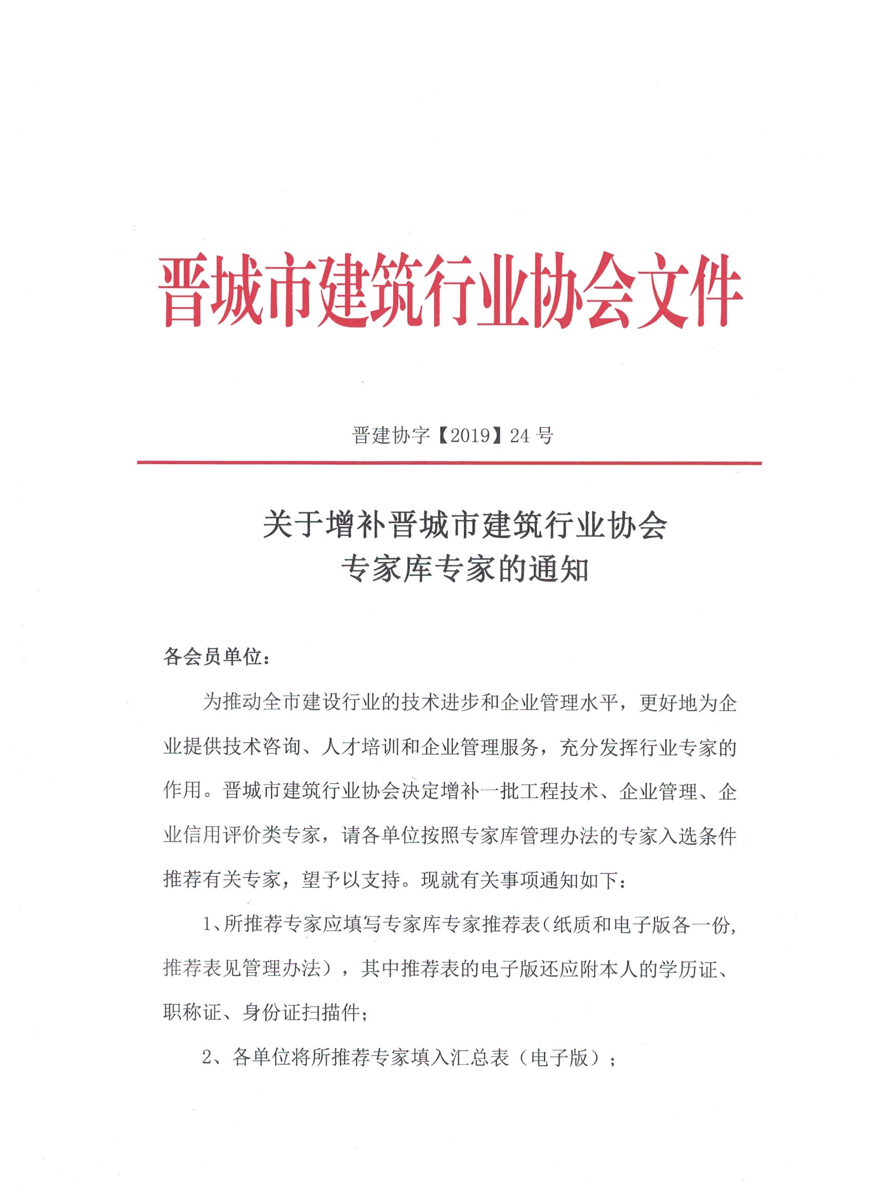 关于增补晋城市建筑行业协会专家库专家的通知