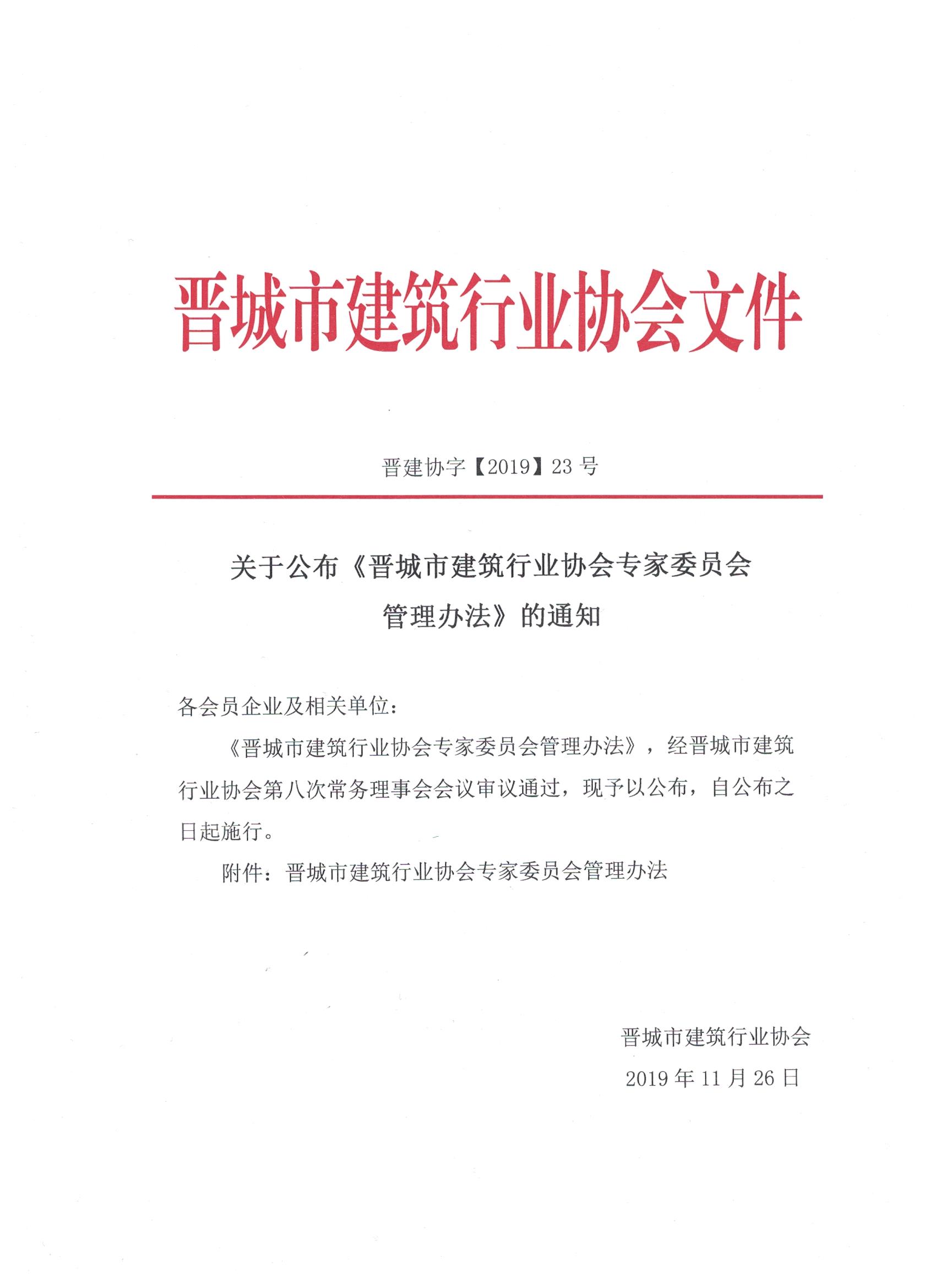 关于公布《晋城市建筑行业协会专家委员会管理办法》的通知