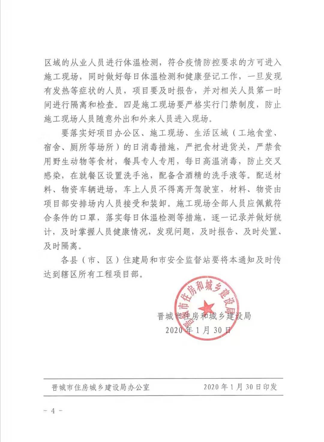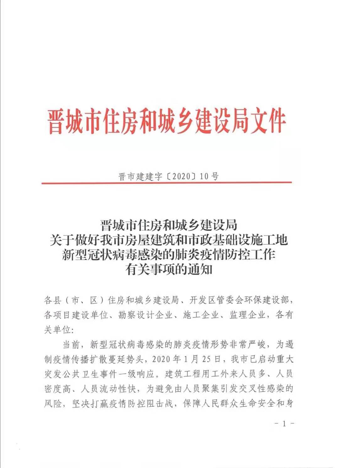 关于转发晋城市住房和城乡建设局《关于做好我市房屋建筑和市政基础设施工地新型冠状病毒感染的肺炎疫情防控工作有关事项的通知》的通知