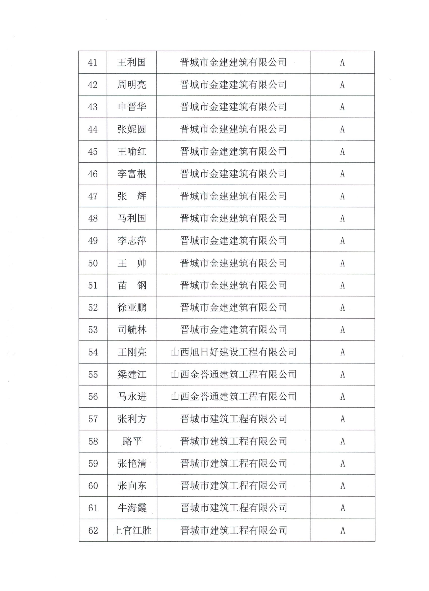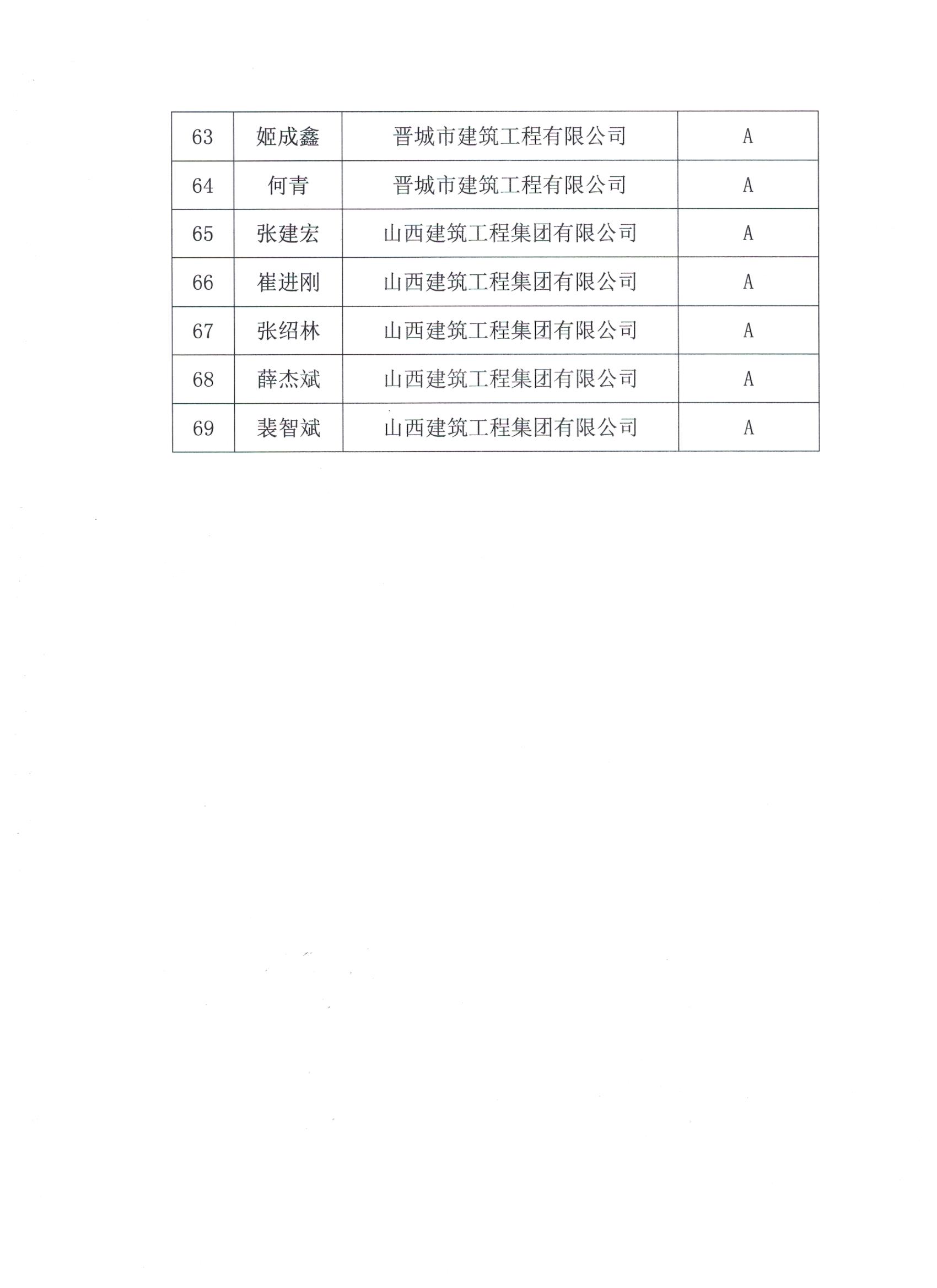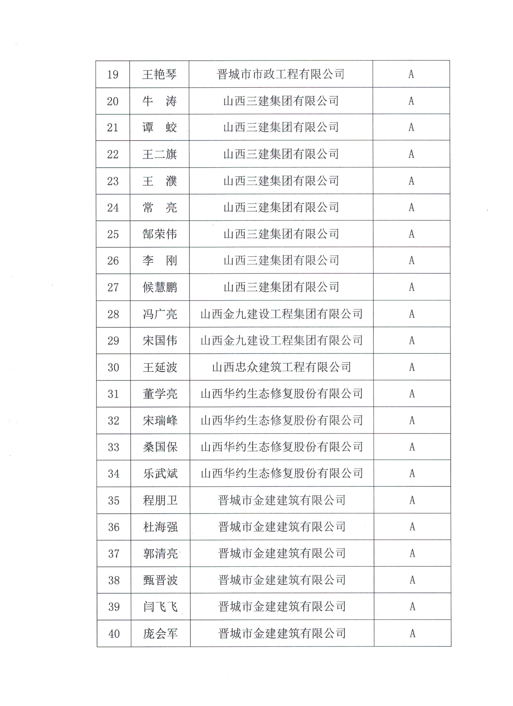 关于公布2019年度晋城市建筑行业协会会员单位建筑业项目经理等级评价名单的通知