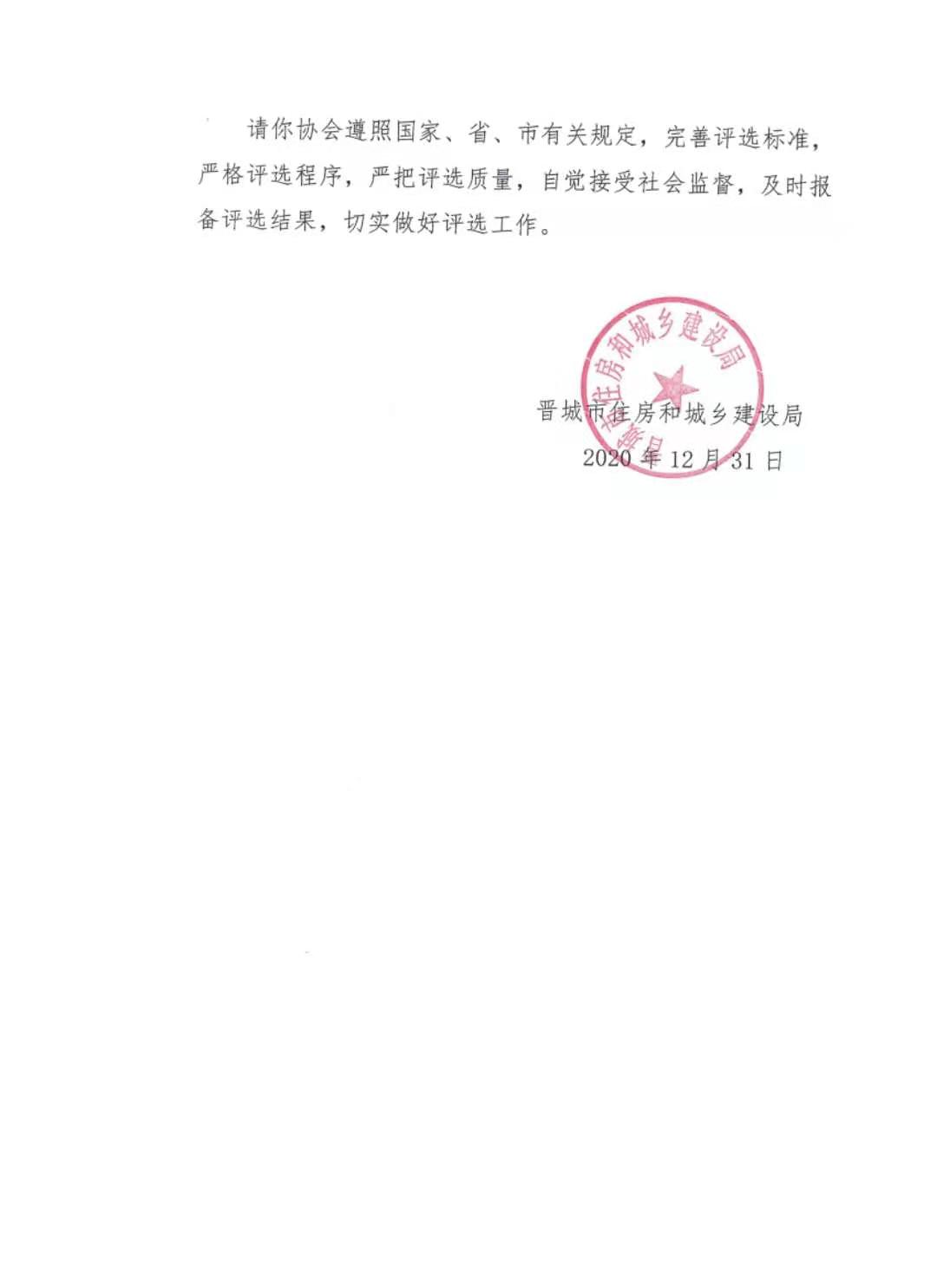 附件:晋城市住房和城乡建设局《关于同意晋城市建筑行业协会在全市组织开展建设工程质量“凤城杯奖”、“******企业”、“******项目经理”评选活动的通知》