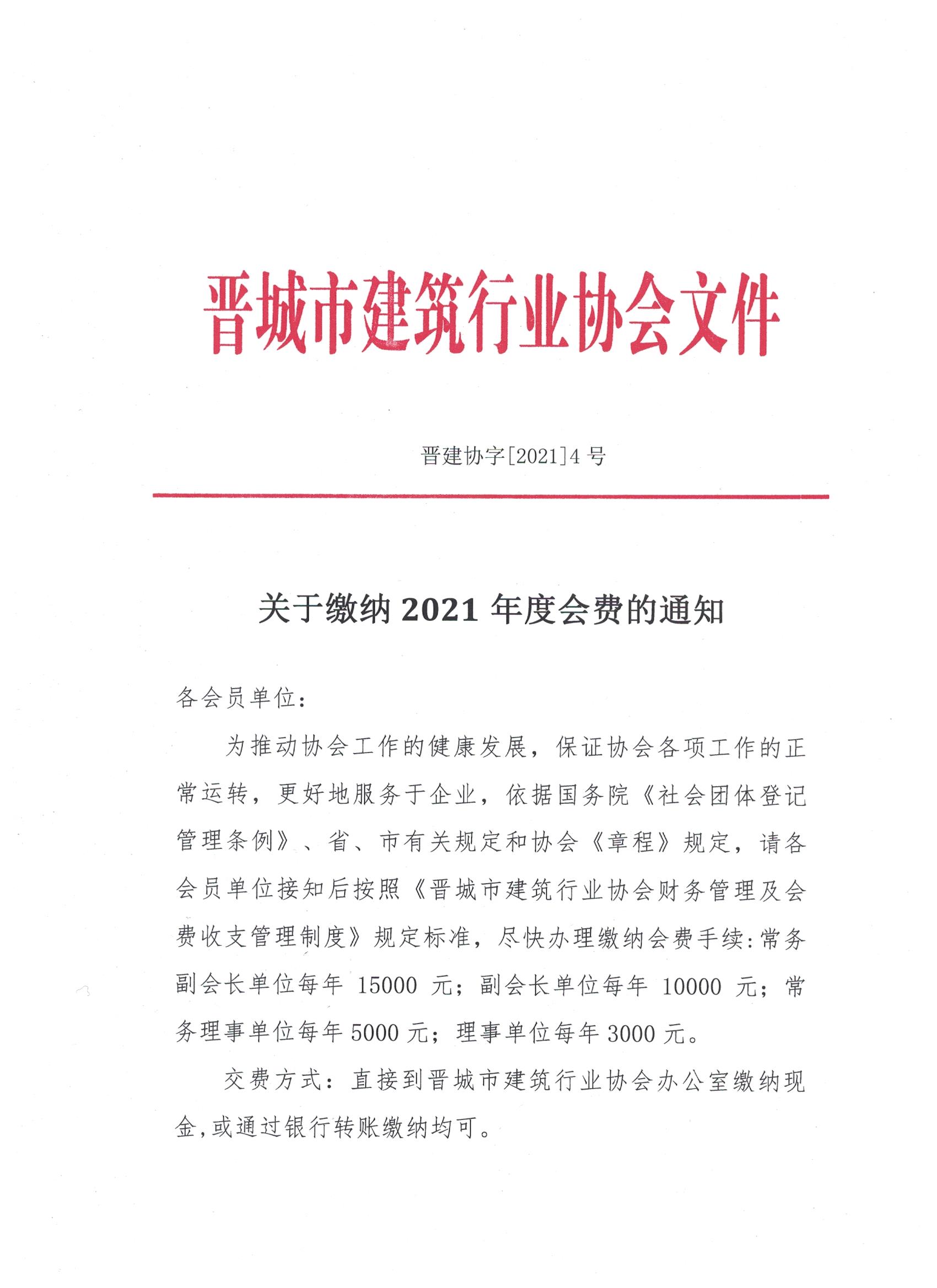 关于缴纳2021年度会费的通知