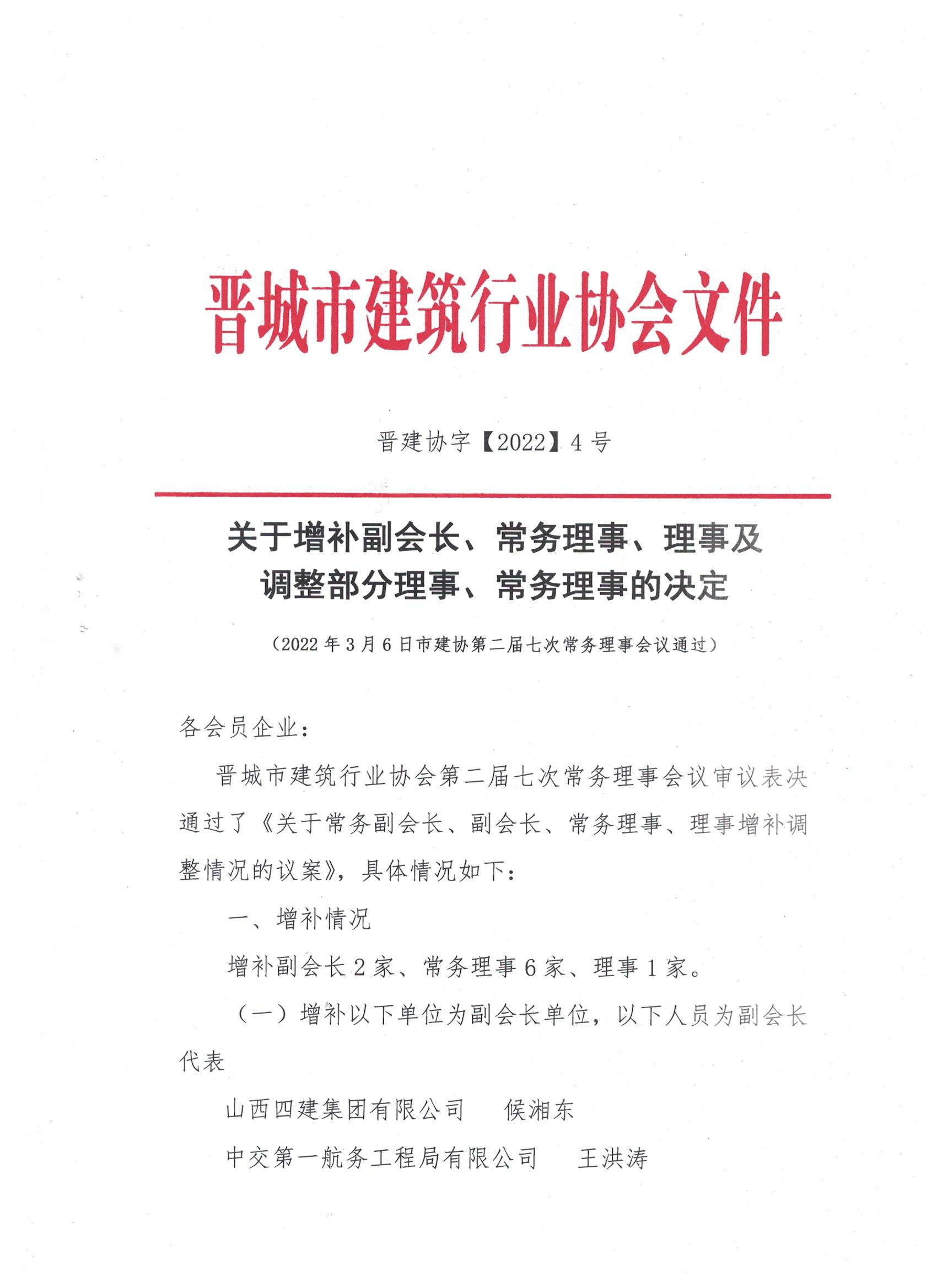 关于增补副会长、常务理事、理事及调整部分理事、常务理事的决定