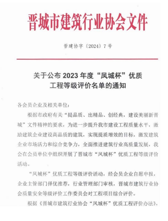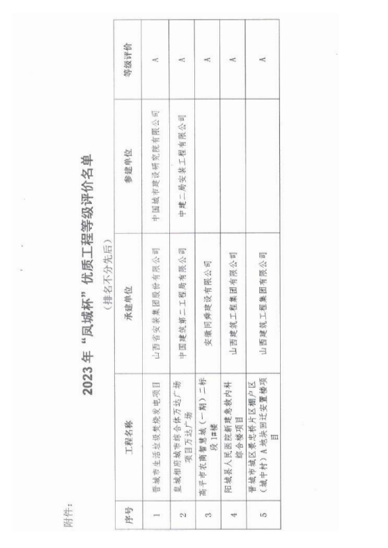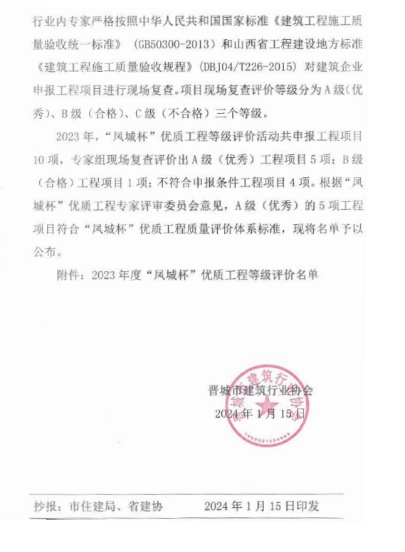 关于公布2023年度“凤城杯”*工程等级评价名单的通知